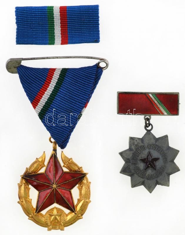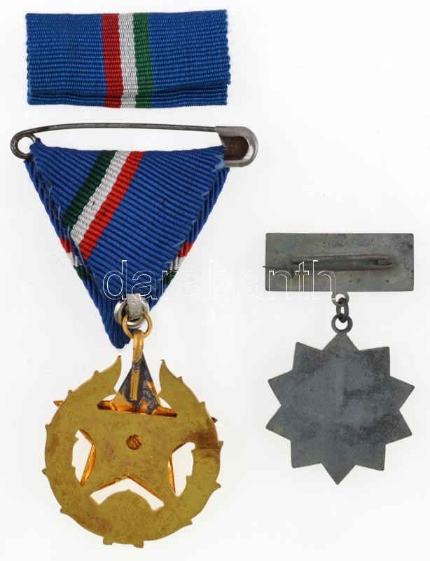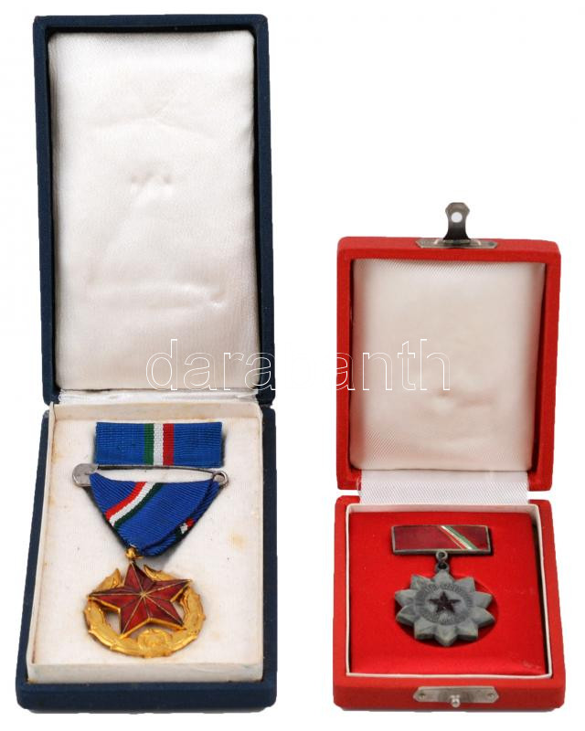 1951. "Közbiztonsági Érem" arany fokozata a rendőrség tagjai részére, aranyozott, zománcozott kitüntetés mellszalaggal és szalagsávval eredeti dísztokban + ~1960. "Kisipari Szövetkezet Kiváló Dolgozója" zománcozott kitüntető jelvény T:2