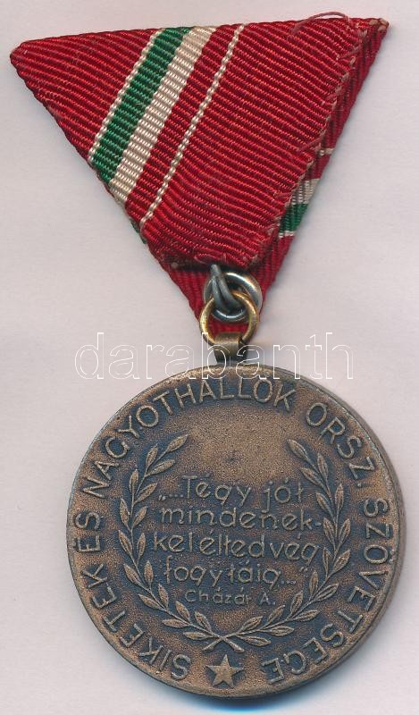Leírás: 1960. "Cházár András Emlékérem 1745-1945-1960 / Siketek és Nagyothallók Országos Szövetsége" bronzozott fém érem mellszalaggal (40mm) T:2