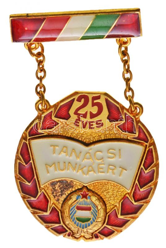 ~1970. "25 éves Tanácsi Munkáért" zománcozott kitüntető jelv... https://www.darabanth.com/hu/251-Gyorsarveres/251.0/Numizmatika/Falerisztika-Kituntetesek-jelvenyek~16/7E1970-25-eves-Tanacsi-Munkaert-zomancozott-kitunteto-jelveny-eredeti-tokban-T1~II1186895