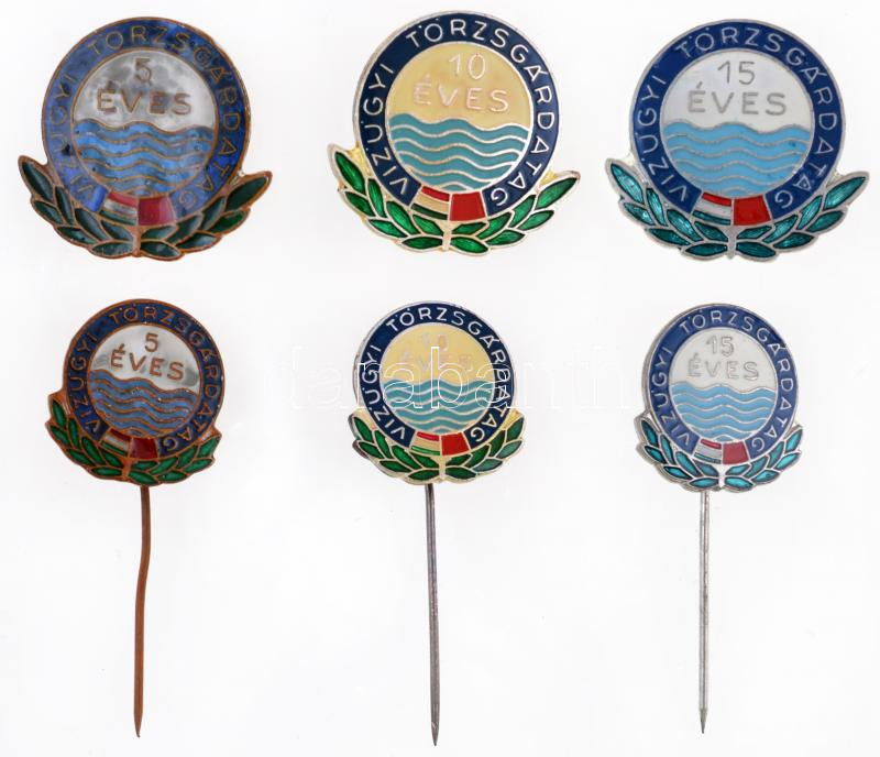~1970. "Vízügyi Törzsgárda 5+10+15 éves" 3db zománcozott jel... https://www.darabanth.com/hu/251-Gyorsarveres/251.0/Numizmatika/Falerisztika-Kituntetesek-jelvenyek~16/7E1970-Vizugyi-Torzsgarda-5plus10plus15-eves-3db-zomancozott-jelveny-mindegyik-miniaturrel-tokb~II1212302
