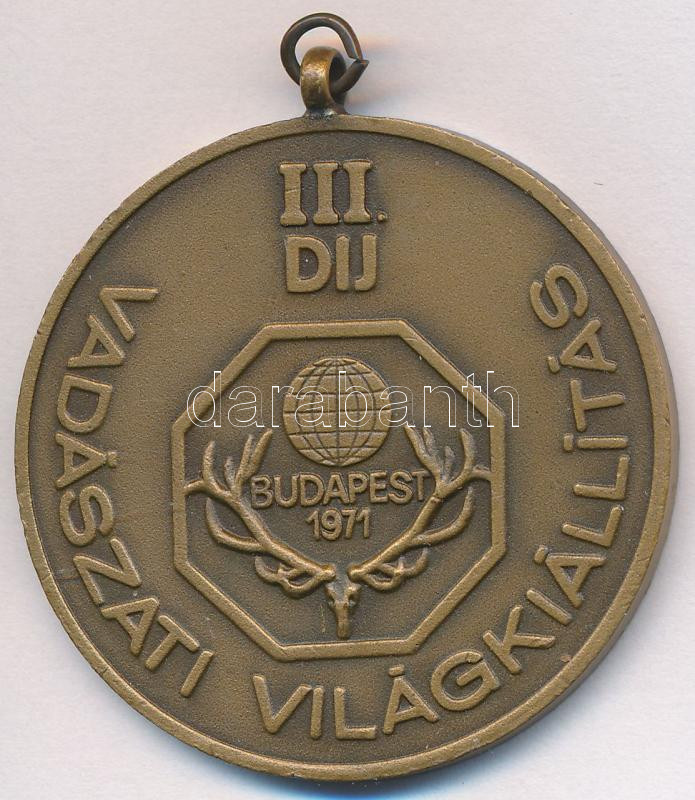 Leírás: Olcsai Kiss Zoltán (1895-1981) 1971. "Vadászati Világkiállítás III. Díj" Br díjérem füllel (45mm) T:2 apró ph.