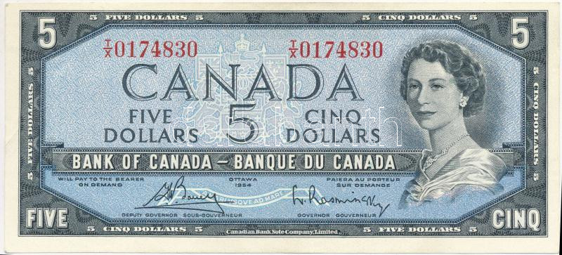 Leírás: Kanada 1972. (1954) 5$ átalakított haj. Szign.: Bouey-Rasminsky T:II,II-
