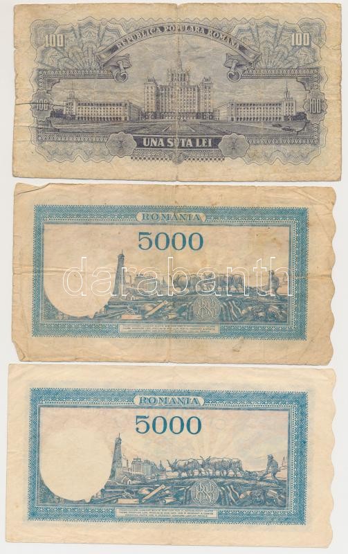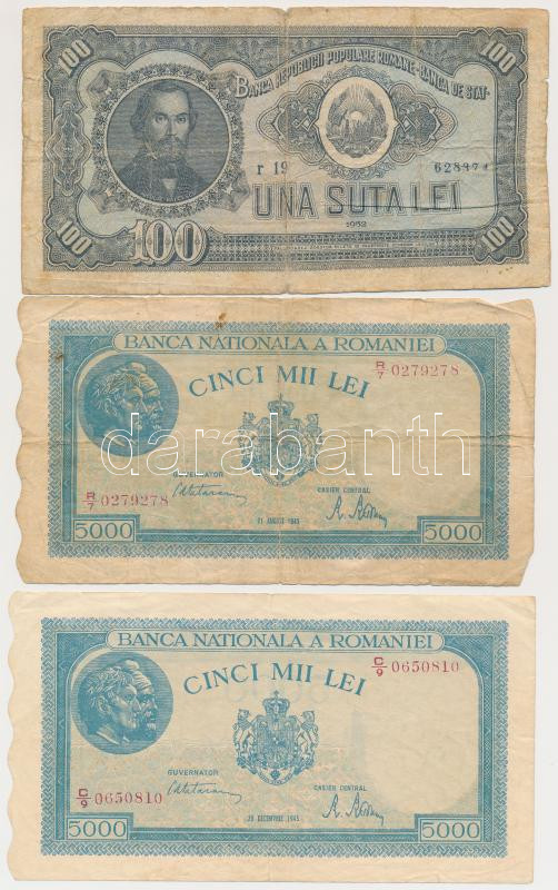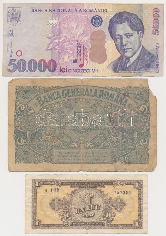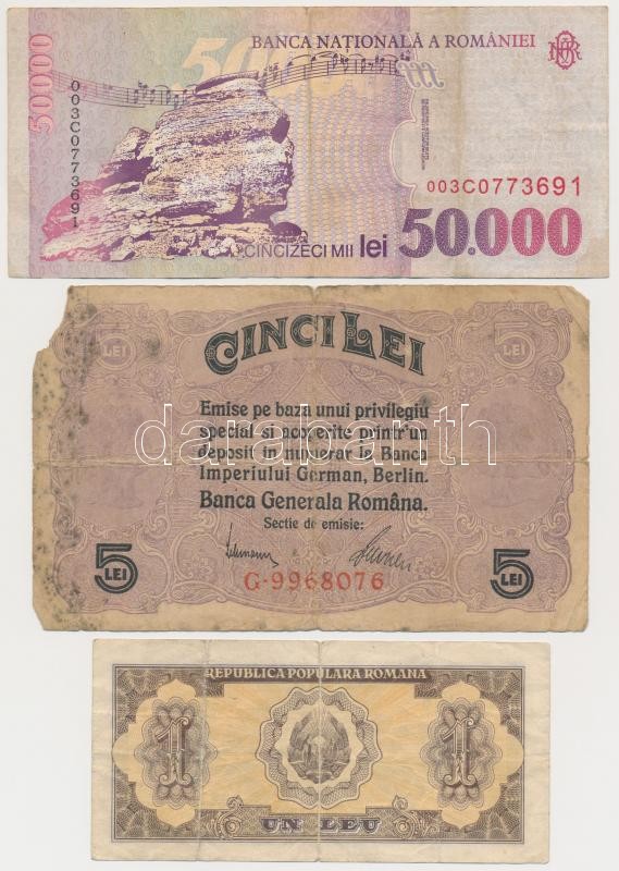 Románia / Német megszállás 1917. 5L + 1945. 5000L (2x) + 1952. 1l + 100L + 2000. 50.000L T:III,III-