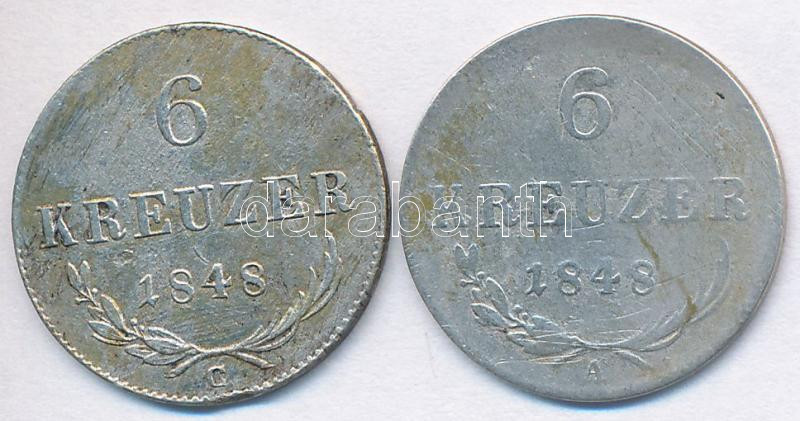 Austria 1848A-C 6 Kreuzer Ag (2x)... https://www.darabanth.com/hu/251-Gyorsarveres/251.0/Numizmatika/Kulfoldi-fem-es-ezustpenzek~12/Ausztria-1848A-C-6kr-Ag-2x-T2-3--Austria-1848A-C-6-Kreuzer-Ag-2x-CVF-F~II1210803