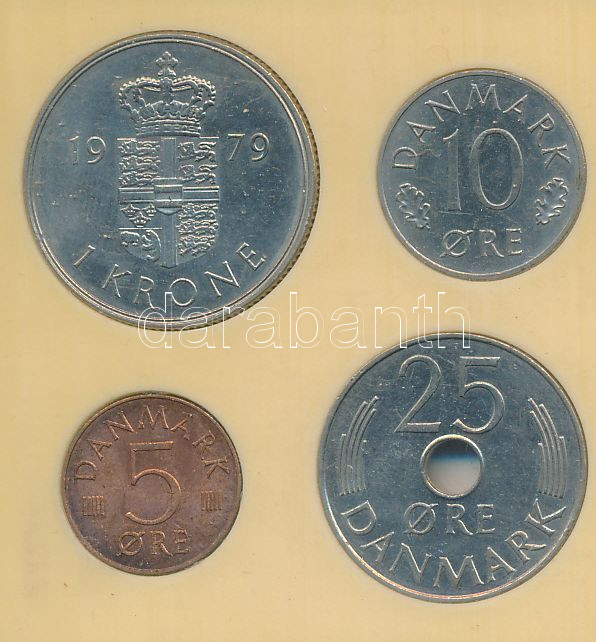 Denmark 197... https://www.darabanth.com/hu/251-Gyorsarveres/251.0/Numizmatika/Kulfoldi-fem-es-ezustpenzek~12/Dania-1978-10o-plus-25o-plus-1979-5o-plus-1Kr-plasztiktokban-T2--Denmark-1978-10-Ore-plus-25-Ore-plus-1979~II1211880