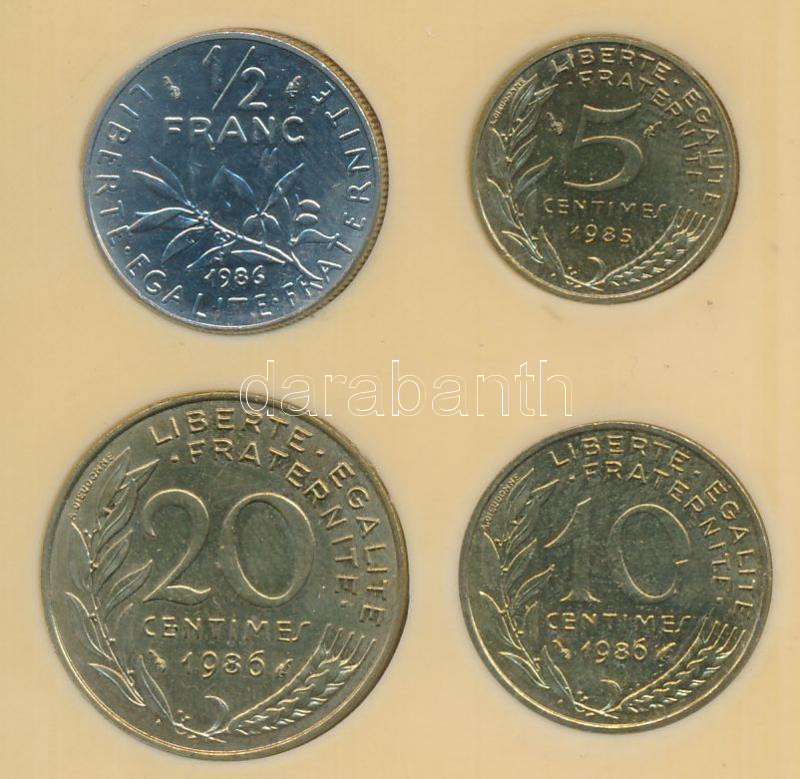 Franciaország 1985. 5c + 1986. 10c + 20c + 1/2Fr plasztiktokban T:2