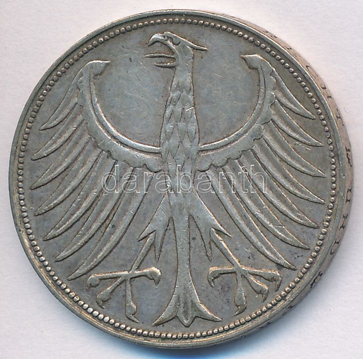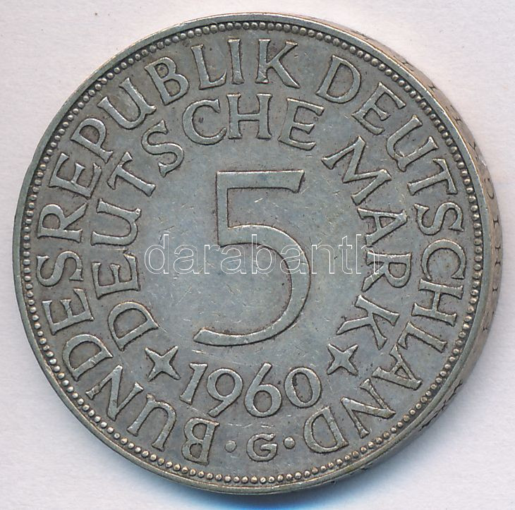 FRG 1960G 5 Mark Ag C:XF,VF https://www.darabanth.com/hu/251-Gyorsarveres/251.0/Numizmatika/Kulfoldi-fem-es-ezustpenzek~12/NSZK-1960G-5M-Ag-T2-2---FRG-1960G-5-Mark-Ag-CXF-VF~II1210416