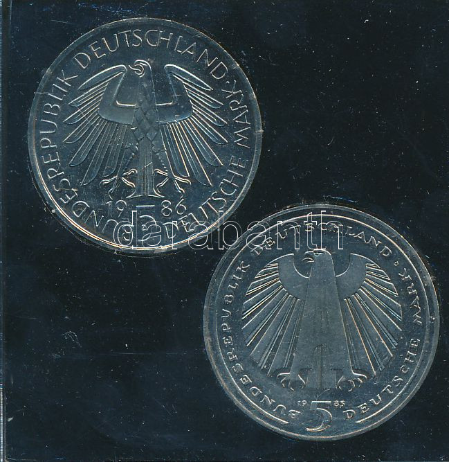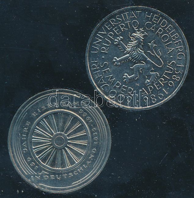 NSZK 1985G 5M "150 éves a német vasút" + 1986D 5M "600 éves a Heidelbergi Egyetem" egy plasztiktokban mindkettő T:2