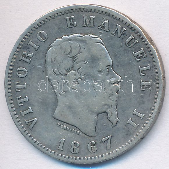 It... https://www.darabanth.com/hu/251-Gyorsarveres/251.0/Numizmatika/Kulfoldi-fem-es-ezustpenzek~12/Olaszorszag-1867M-BN-1L-Ag-II-Viktor-Emanuel-T2-ph--Italy-1867M-BN-1-Lira-Ag-Vittorio-Emanu~II1209090