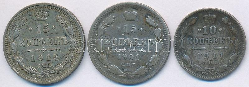 Orosz Birodalom 1901. 15k Ag + 1911. 10k Ag + 1914. 15k Ag T:2,2-,3