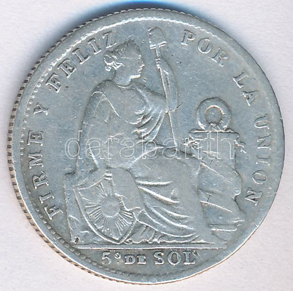 Peru 1903. 1/5 Sol Ag C:VF,F https://www.darabanth.com/hu/251-Gyorsarveres/251.0/Numizmatika/Kulfoldi-fem-es-ezustpenzek~12/Peru-1903-15S-Ag-T2-3--Peru-1903-15-Sol-Ag-CVF-F~II1209184