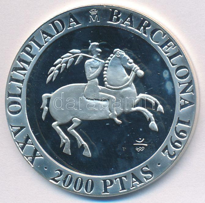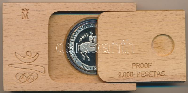 Spanyolország 1991. 2000P Ag "1992 Olimpia - Középkori lovas" eredeti fa díszdobozban, tanúsítvánnyal T:PP