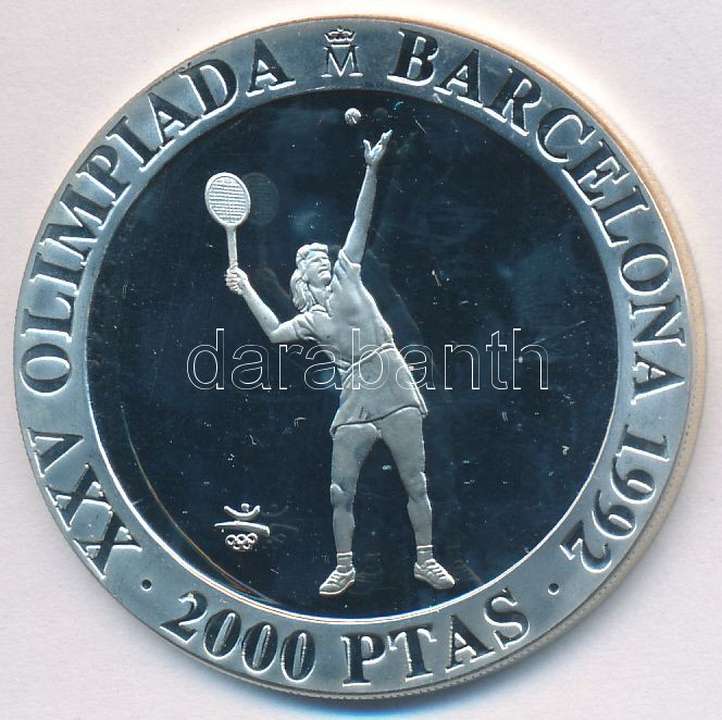 Spanyolország 1991. 2000P Ag "1992 Olimpia - Tenisz" eredeti fa díszdobozban, tanúsítvánnyal T:PP