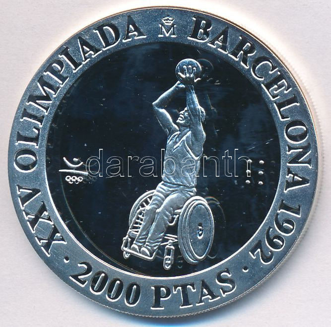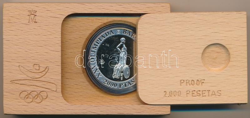 Spanyolország 1992. 2000P Ag "1992 Olimpia - Kerekesszékes kosárlabda" eredeti fa díszdobozban, tanúsítvánnyal T:PP