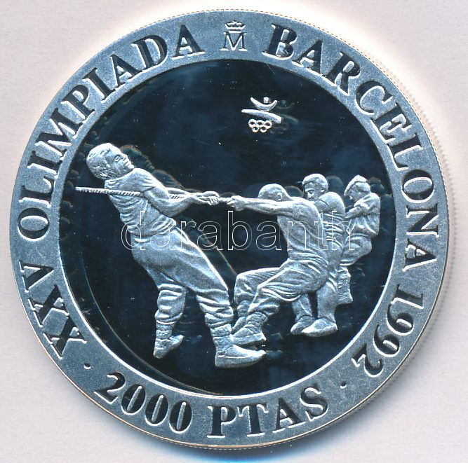 Spanyolország 1992. 2000P Ag "1992 Olimpia - Kötélhúzás" eredeti fa díszdobozban, tanúsítvánnyal T:PP