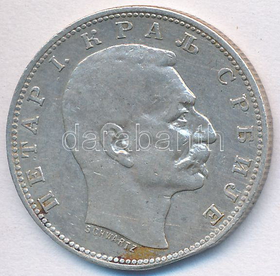 Serbia 1912. 1 ... https://www.darabanth.com/hu/251-Gyorsarveres/251.0/Numizmatika/Kulfoldi-fem-es-ezustpenzek~12/Szerbia-1912-1D-Ag-I-Peter-T2-fulnyom--Serbia-1912-1-Dinar-Ag-Petar-I-CVF-ear-mark~II1209189