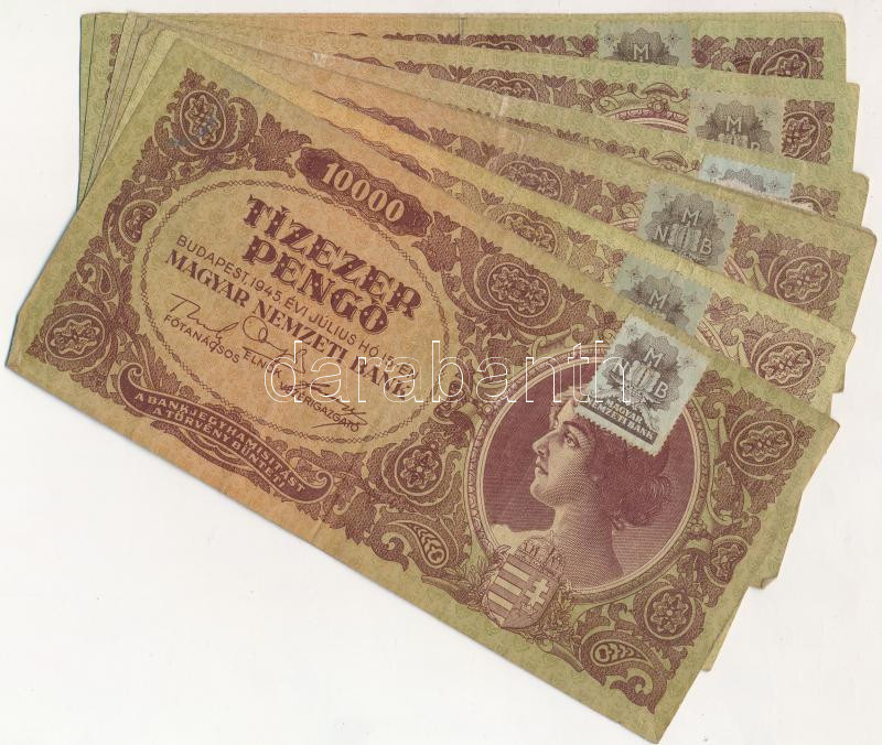 1945. 10.000P (30x) legtöbb "MNB" bélyeggel T:vegyes https://www.darabanth.com/hu/251-Gyorsarveres/251.0/Numizmatika/Magyar-bankjegyek~7/1945-10000P-30x-legtobb-MNB-belyeggel-Tvegyes~II1213787