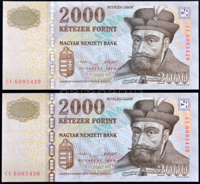 2013. 2000Ft "CC" (2x) sorszámkövetők T:I