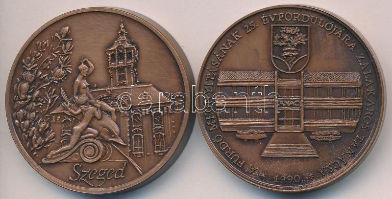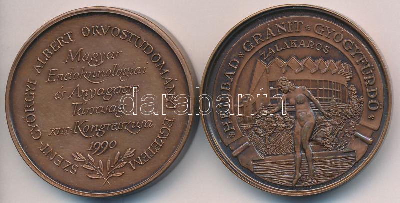 Bognár György (1944-) 1990. "Heilbad Gránit Gyógyfürdő Zalakaros / A fürdő megnyitásának 25. évfordulójára Zalakaros tanácsa" Br piefort érem (43mm) + Fritz Mihály (1947-) 1990. "Szent-Györgyi Albert Orvostudományi Egyetem - Magyar Endokrinológiai és Anyagcsere Társaság XIII. Kongresszusa Szeged" Br piefort érem (43mm) T:2