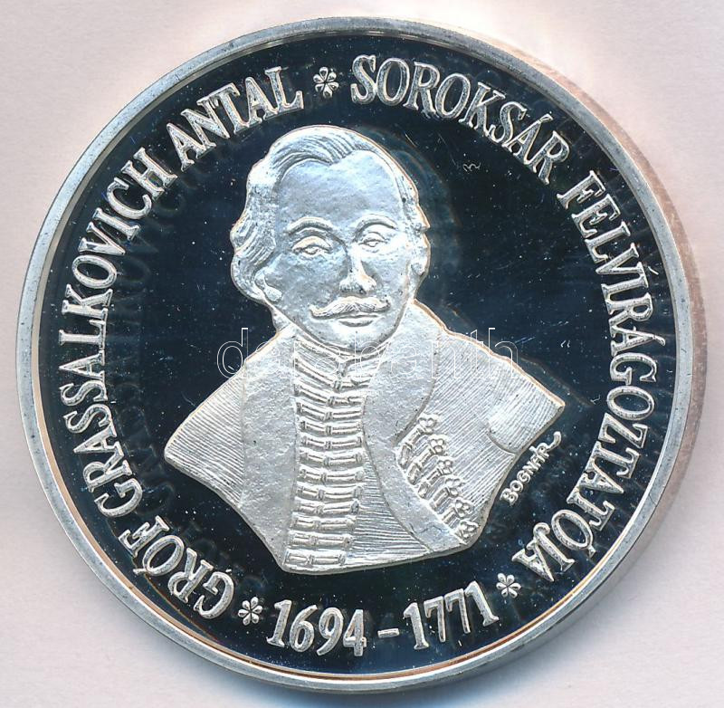 Leírás: Bognár György (1944-) 1994. "Gróf Grassalkovich Antal - Soroksár felvirágoztatója / Az önálló Soroksárért" Ag emlékérem (36,29g/0.925/42,5mm) T:PP