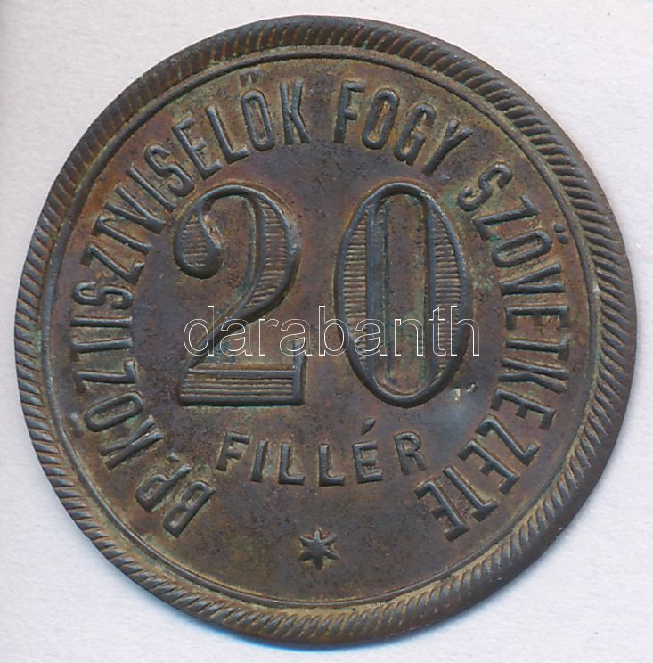 Budapest ~1920. "Bp. Köztisztviselők Fogy. Szövetkezete" 20f... https://www.darabanth.com/hu/251-Gyorsarveres/251.0/Numizmatika/Magyar-es-kulfoldi-papir-es-fem-szuksegpenzek~6/Budapest-7E1920-Bp-Koztisztviselok-Fogy-Szovetkezete-20f-T2-kis-u~II1209574
