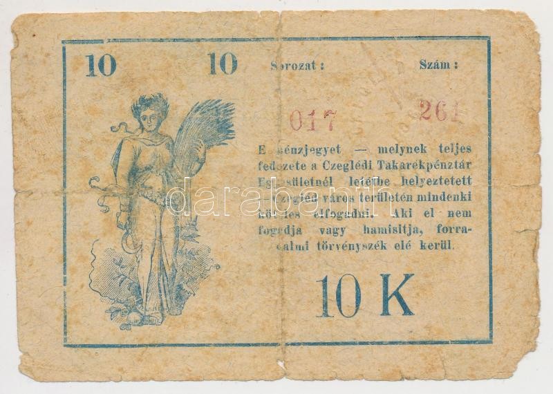 Leírás: Cegléd 1919.05.31. 10K szárazbélyegző nélkül T:III-,IV