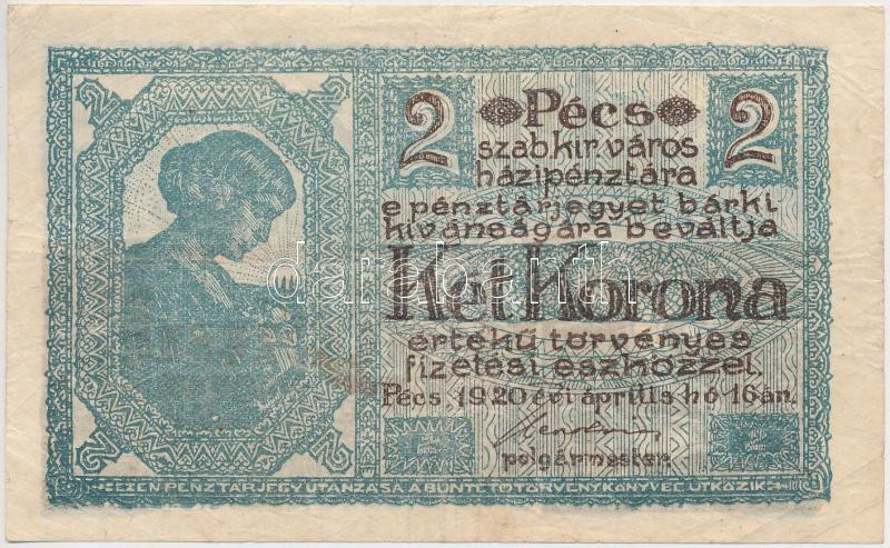 Pécs 1920. 2K pénztárjegy T:III,III-