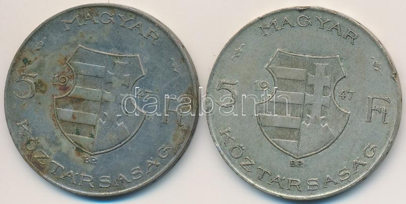 1947. 5Ft Ag "Kossuth" (2x) T:2-,3