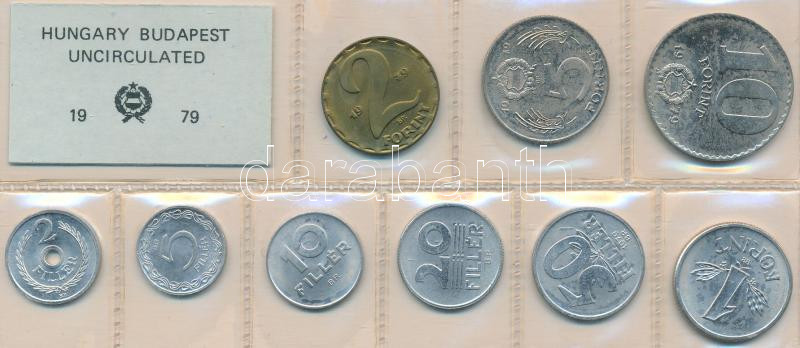 Leírás: 1979. 2f-10Ft 9db klf érmés forgalmi sor fóliatokban T:1