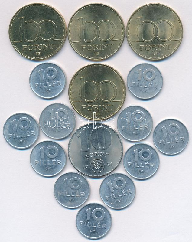 Leírás: 1981-1992. 10f Al + 1981. 10Ft + 1993-1996. 100Ft (4x) T:1-,2