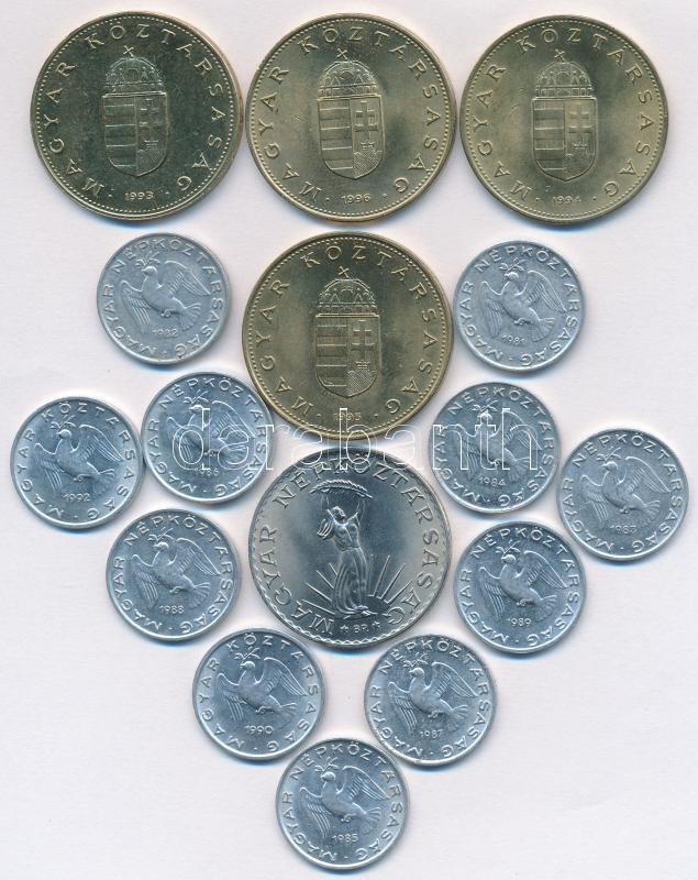1981-1992. 10f Al + 1981. 10Ft + 1993-1996. 100Ft (4x) T:1-,2 https://www.darabanth.com/hu/251-Gyorsarveres/251.0/Numizmatika/Magyar-fem-es-ezustpenzek~8/1981-1992-10f-Al-plus-1981-10Ft-plus-1993-1996-100Ft-4x-T1-2~II1211940