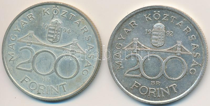Leírás: 1992. 200Ft Ag "MNB" + 1994. 200Ft Ag "Deák" T:2,2-