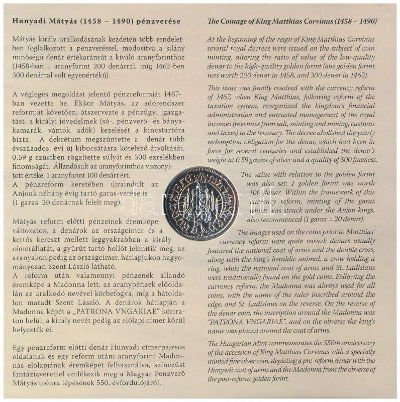 2008. 1Ft-100Ft 7klf db + Mátyás denár Ag fantáziaverete "Reneszá... https://www.darabanth.com/hu/251-Gyorsarveres/251.0/Numizmatika/Magyar-fem-es-ezustpenzek~8/2008-1Ft-100Ft-7klf-db-plus-Matyas-denar-Ag-fantaziaverete-Reneszansz-emlekev-disztokos-szet~II1212273