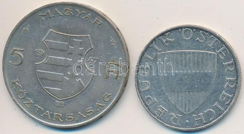 Leírás: Vegyes: 1947. 5Ft Ag "Kossuth" + Ausztria 1957. 10Sch Ag T:2,2-