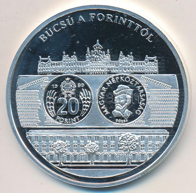 Leírás: DN "A magyar pénz krónikája - Búcsú a forinttól" Ag emlékérem tanúsítvánnyal (20g/0.999/38,61mm) T:PP