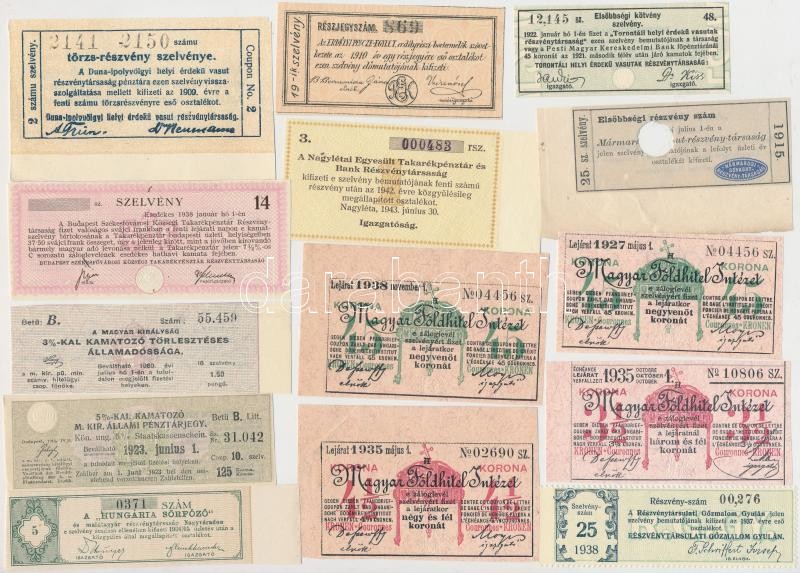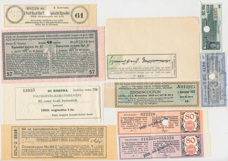 Leírás: 64db-os vegyes magyar és külföldi részvény és kötvény szelvény tétel T:vegyes