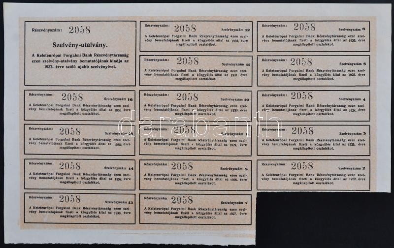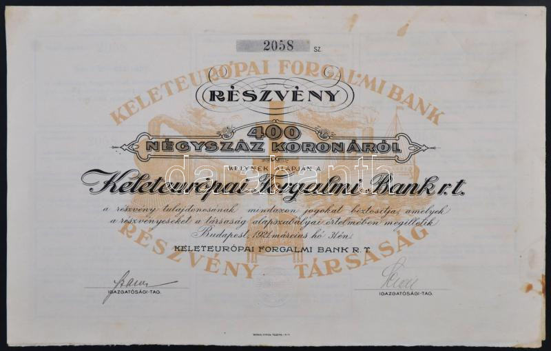 Budapest 1921. "Keleteurópai Forgalmi Bank" részvénye 400K-r... https://www.darabanth.com/hu/251-Gyorsarveres/251.0/Numizmatika/Reszvenyek-es-sorsjegyek~5/Budapest-1921-Keleteuropai-Forgalmi-Bank-reszvenye-400K-rol-szelvenyekkel-TII~II1209847