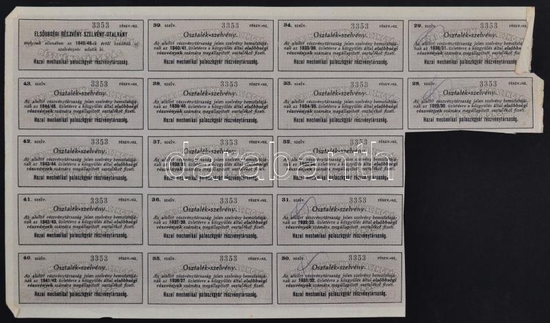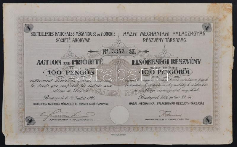 Budapest 1926. "Hazai Mechanikai Palaczkgyár Részvény-Társaság&qu... https://www.darabanth.com/hu/251-Gyorsarveres/251.0/Numizmatika/Reszvenyek-es-sorsjegyek~5/Budapest-1926-Hazai-Mechanikai-Palaczkgyar-Reszveny-Tarsasag-reszvenye-100P-rol-szelveny~II1209834