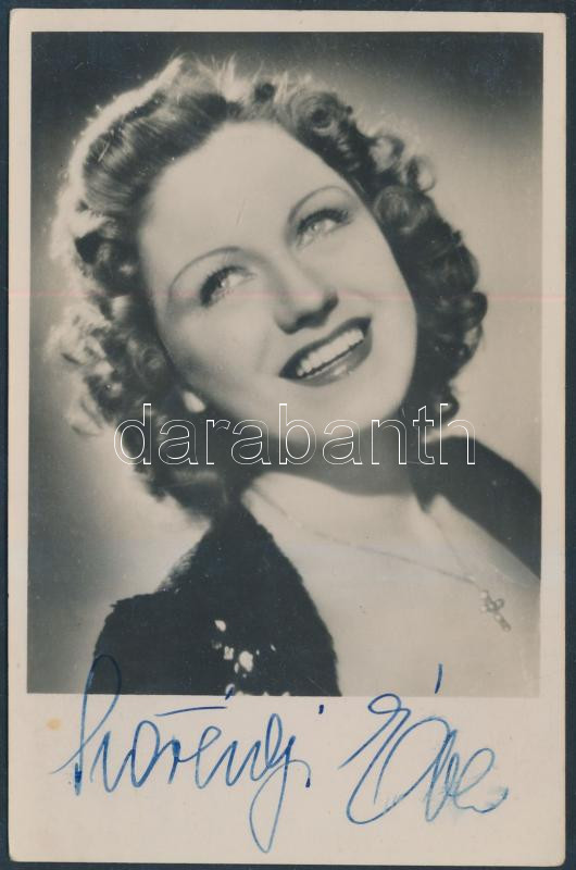 Leírás: Szörényi Éva (1917-2009) színésznő aláírása az őt ábrázoló fotólapon