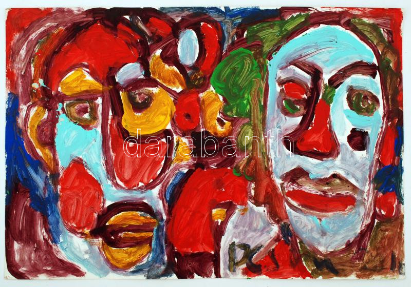 Leírás: Cs. Németh Miklós (1934-2012): Bohócok. Olaj, karton, jelzett, 70×50 cm
