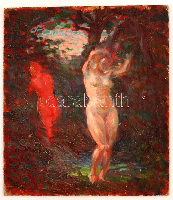 Leírás: Jelzés nélkül:Akt, olaj, farost, 31x27cm