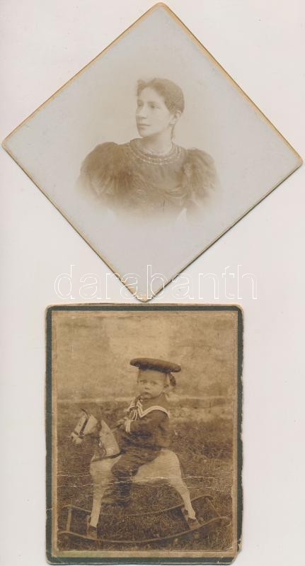 Leírás: cca 1900-1920 5 db régi keményhátú fotó, kisgyermekről, családi fotó, csoportkép, 11x11 és 12x17 cm közötti méretekben