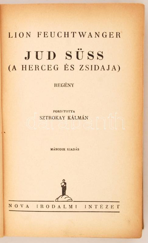 Lion Feuchtwanger: Jud Süss. Bp., 1934, Nova. 406 l. Kiadói vászonköté... https://www.darabanth.com/hu/252-Gyorsarveres/252.0/Festmeny-mutargy-papirregiseg-egyeb/Konyvek-Egyeb-ritkasagok~800034/Lion-Feuchtwanger-Jud-Suss-Bp-1934-Nova-406-l-Kiadoi-vaszonkotes~II1216032