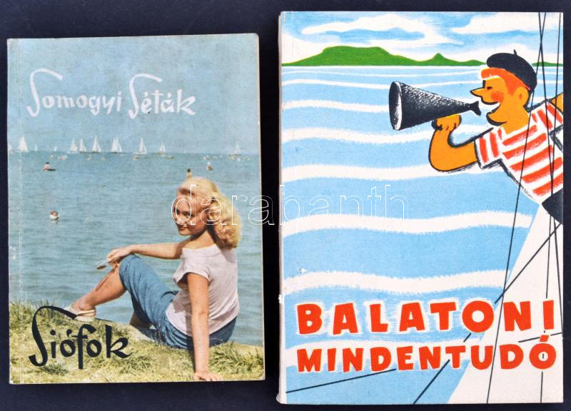 Fekete-Zoltán-Várfalvi: Balatoni mindentudó. Gyakorlati tudnivalók és tájékoztató helységtérképek a balatoni nyaralók, üdülők és kirándulók részére. Bp., 1958. Kiadói papírkötés, nagyon szép állapotban, térképekkel, balatoni hajók rajzaival. Hozzá: Somogyi séták. Siófok. 1957.