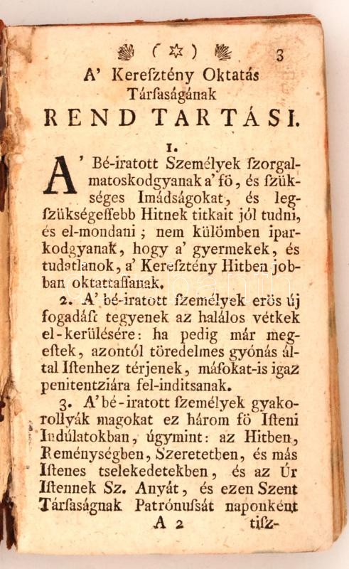 [Canisius Péter]: [A Jesus Társaságából való Canisius Péter által egybeszedetett és három iskolára elosztatott keresztényi hitnek öt fő tzikkelyeiről közönséges, és szükséges kérdések könyvetskéje]. [Nagyszombat], [1772]. Címlapja és az utolsó néhány lap hiányzik, kopott, sérült gerincű félbőr kötésben.