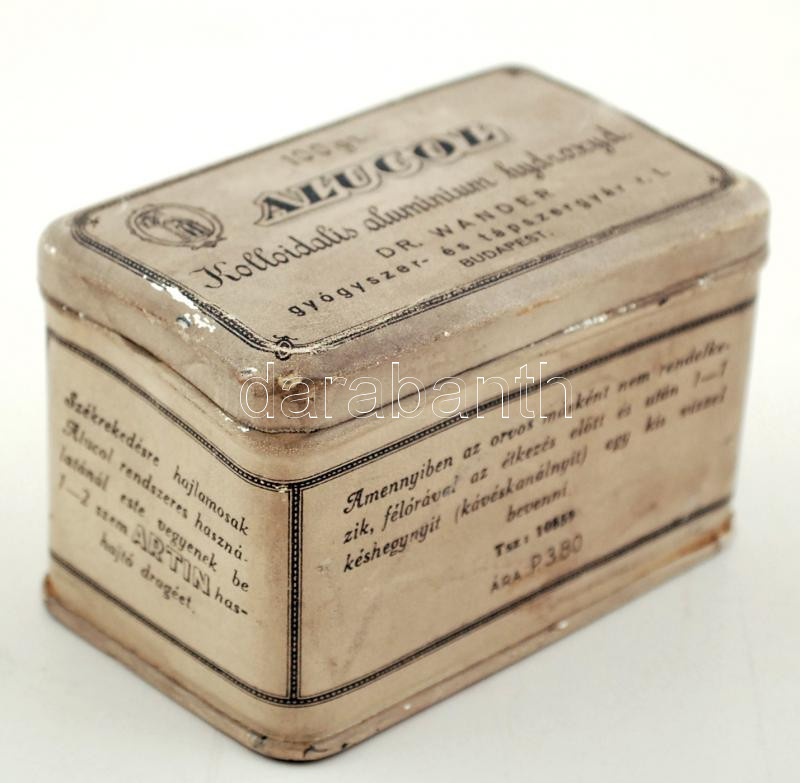 "Alucol" Dr. Wander gyógyszer- és tápszergyár r.t. Budapest fém doboza... https://www.darabanth.com/hu/252-Gyorsarveres/252.0/Festmeny-mutargy-papirregiseg-egyeb/Reklam~800037/Alucol-Dr-Wander-gyogyszer-es-tapszergyar-rt-Budapest-fem-doboza-5-5x8x5-cm~II1219600