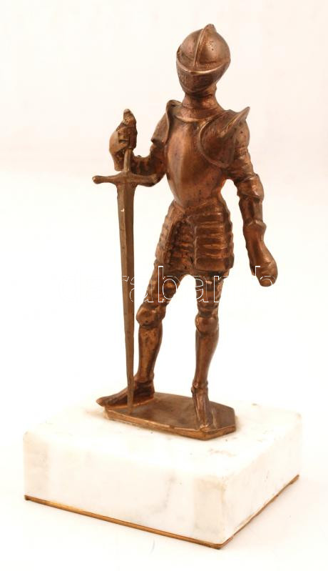 Leírás: Jelzés nélkül: Lovag páncélban. Réz, márvány talapzaton, m:17 cm