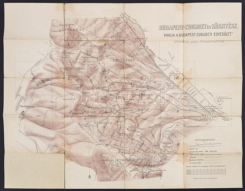 1906 Budapest-Zugliget és környéke kiadja a Budapest-Zugligeti Egyesület, jelmagyarázattal, kiadja a Magyar Földrajzi Intézet Rt., vászontérkép, 54x65 cm