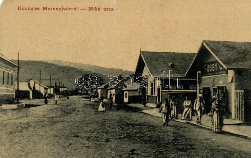 Marosújvár, Ocna Mures; Mikó utca, Füssy J. üzlete / street, shop (EM) https://www.darabanth.com/hu/252-Gyorsarveres/252.0/Kepeslapok/Erdely~200007/Marosujvar-Ocna-Mures-Miko-utca-Fussy-J-uzlete-street-shop-EM~II1220804