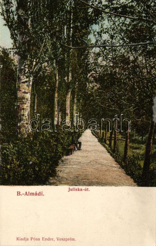 Balatonalmádi, Juliska út; kiadja Pósa Endre https://www.darabanth.com/hu/252-Gyorsarveres/252.0/Kepeslapok/Magyarorszag~200006/Balatonalmadi-Juliska-ut-kiadja-Posa-Endre~II1219354